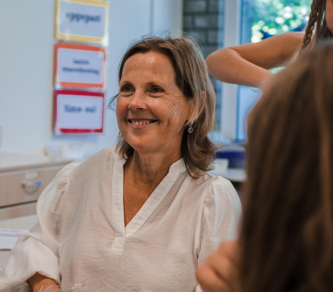 Karin is leerkracht van de blauwe groep.